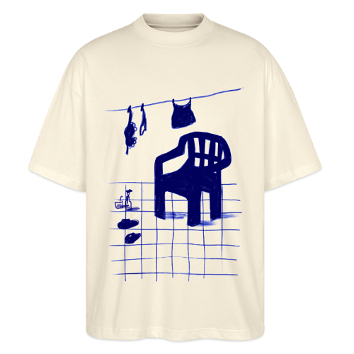Every print starts with a cyanotype: sunlight, paper, and objects you might overlook as inspiration — a garden chair, a ladder, maybe your morning coffee setup. These designs are then printed, turning ordinary moments into quiet odes you can wear.